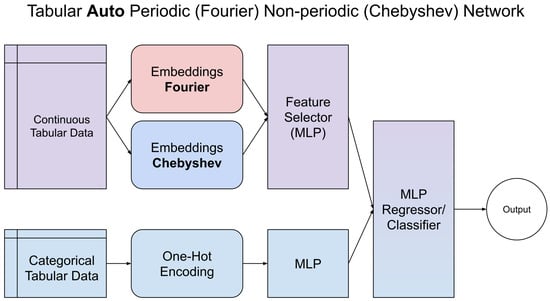 While Fourier transforms and Chebyshev polynomials individually address periodicity and non-linearity, real-world tabular datasets often contain a mixture of both types of patterns. Integrated approaches are necessary to capture the full spectrum of relationships within the data. Our proposed architectures, PNPNet and AutoPNPNet, combine the strengths of both Fourier and Chebyshev encoders. PNPNet involves an a priori separation of features into periodic and non-periodic categories. This explicit division allows each encoder to specialize in modelling its designated feature type, improving the overall representation learning. AutoPNPNet addresses the limitations of manual feature separation by feeding all features into both encoders. An attention mechanism learns to automatically weigh and select features from each encoder, effectively performing feature selection and combination in a data-driven manner. These architectures draw inspiration from models that incorporate multiple types of feature transformations or multiple branches to capture different aspects of the data [21,27]. By integrating specialized encoders, the models can handle heterogeneous patterns more effectively than architectures that rely on a single transformation method.