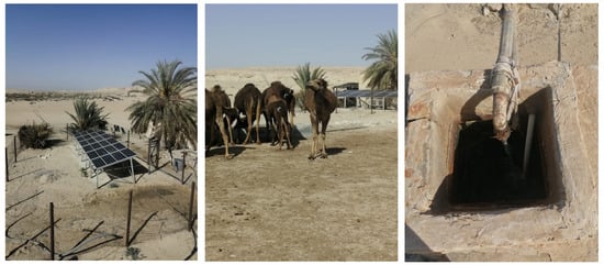 - Al-Smairan, M.; Khawaldeh, H.A.; Shboul, B.; Almomani, F. Techno-enviro-economic analysis of grid-connected solar powered floating PV water pumping system for farmland applications: A numerical design model. Heliyon 2024, 10, e37888. [Google Scholar] [CrossRef]