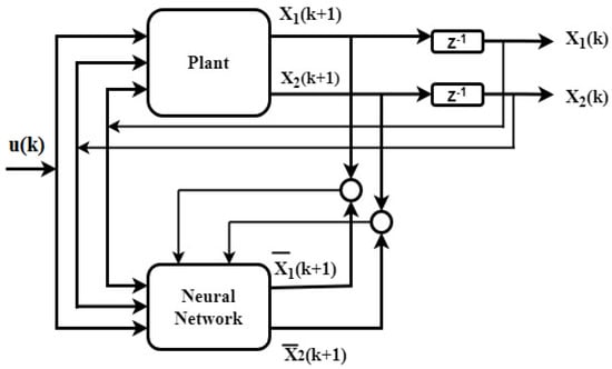 In the given equations, there are three bilinear terms: , , and . These terms are approximated using Taylor series expansion around the operating points and to linearize them. Substituting these linear approximations into Equations (1) and (2) results in the linearized model of the plant as follows: