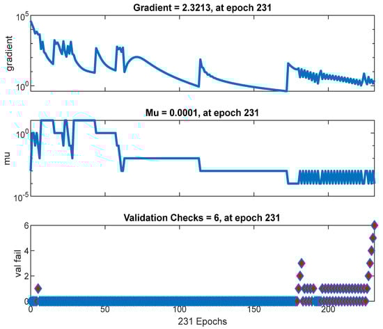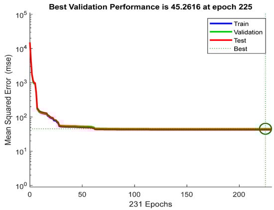 The PID-JC integrates with ANN to predict solar irradiance and water demand using previously recorded data. An MLP with a single input and seven hidden and one output neurons are used. The proposed method for PV-powered water-pumping system under partial shading conditions involves the following main steps: the development and training of the ANN model utilizing temperature and irradiation data to predict environmental changes accurately. The ANN’s output is then used to optimize the parameters of the PID controller with the help of the JF algorithm, which iteratively updates and evaluates the parameters of the PID for optimal system performance. The optimum PID controller is applied to a boost converter in the PV system for efficient water pumping through dynamic sunlight and temperature changes. Algorithm 2 describes the process of optimizing a PID controller using an ANN and the JF: