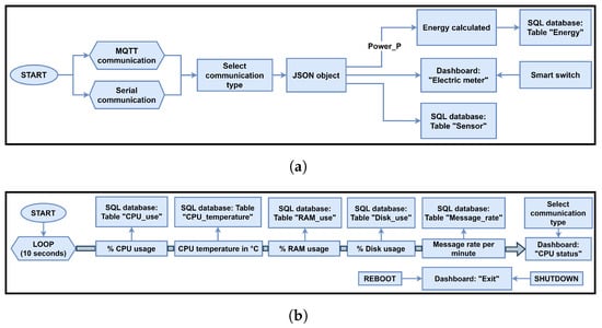 Our software employs Node-RED and MariaDB (MySQL) on a Raspberry Pi 4, enabling real-time data monitoring, an eWeLink-based Sonoff switch, and the flexibility to switch between serial communication (SC) and MQTT. This setup is classified as a SCADA application for SHs and ensures cybersecurity for both the SS (Sonoff) and the database. Table 3 summarizes most relevant aspects from software design of the related works.