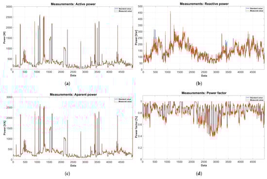 Therefore, the determination of the variables , , , , , , , , S, P, Q, and FP is done using the following equations. Equation (8) shows the method for calculating the household electrical system’s value.