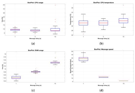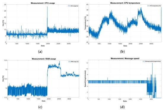 - Step 5: The variables are delivered in JSON format via MQTT with a variable data sending rate (5, 10, 15, 20, 25, or 30 s), and the message is sent to the server “broker.emqx.io” (free server with username and password) on port 1883 and with a quality of service (QoS) equal to 0 (the sender does not acknowledge receipt of the message and the receiver does not store or retransmit the message).