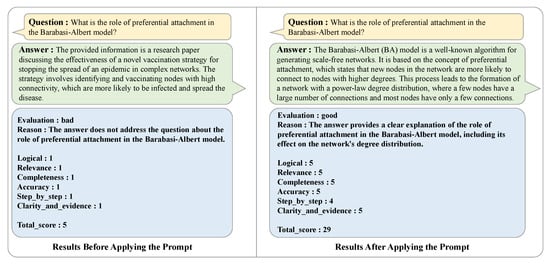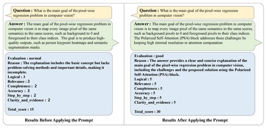 Sample 1: Transformation of response quality after implementing the reviewing loop system. The evaluation rating changed from “bad” to “good” with the total score increasing from 5 to 29.