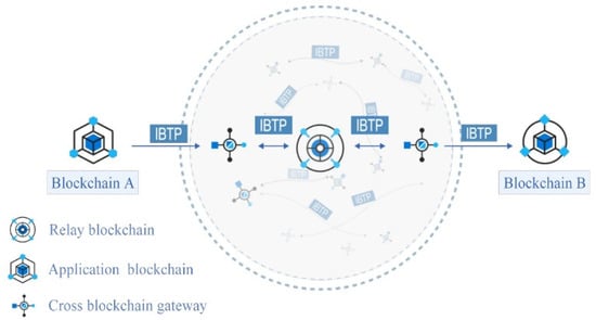 There are essential differences between cross-blockchain routing and Relay chain application scenarios. The scene of the Relay chain is assets transfer, acting as a trusted third party to review the security of the communication process. This is because the two participants of the asset-based data cross-chain are actually unable to trust each other and the communication data needs to be forwarded by a third party. The main scenario of the cross-blockchain gateway is the cross-chain transmission of nonasset data and the service provision of smart contracts so that the requirements for security are low. Therefore, the two methods have their advantages. In addition, there exists the hybrid Relay model, such as BitXHub [], which combines cross-chain routing and Relay chains to meet the cross-chain requirements of the high security of assets and high efficiency of data cross-chain. BitXHub designs a protocol (Inter-Blockchain Transfer Protocol (IBTP) that connects the application blockchain and the Relay blockchain through the cross-blockchain gateway to form a cross-chain network. Figure 1 is the structure diagram of BitXHub.