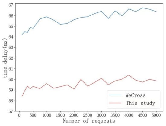 From the experimental results, it can be seen that the scheme in this study has a greater advantage compared with WeCross, and the scheme is based on the organizational structure of the chain itself for lightweight consideration, so the scheme is more lightweight.