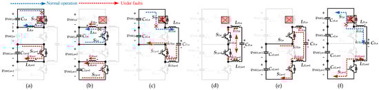 The OCFs of the SM were first analyzed. When the SM has an IGBT OCF, using an OCF in S1 as an example, the four fault circuits formed by the IBFBC are shown in Figure 3.