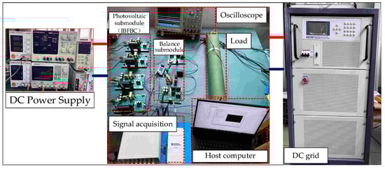 To further verify the proposed fault diagnosis technique, a small-scale experimental platform for a Photovoltaic DC collection system was constructed, comprising four IBFBCs and two balancing modules. The experimental parameters are listed in Table 2, and the experimental setup is illustrated in Figure 12. For simplicity, the IBFBCs use constant current controllers instead of MPPT controllers. The high-voltage side is connected to a load resistor, followed by a constant voltage source. The power is dissipated through the resistor, and the voltage on the high-voltage side is clamped by the constant voltage source to simulate a DC grid. Signal conditioning circuits and NI-DAQmx modules are used for data acquisition, while IGBT OCFs are simulated by blocking the corresponding gate drive signals.