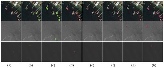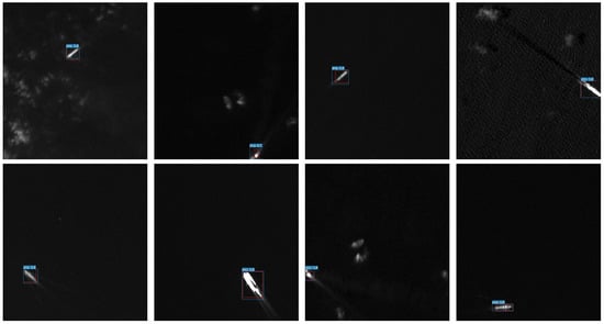 The OSSD dataset [31] has a resolution of 5 m and dimensions of 512 × 512 pixels. The targets are captured using only the RGB channels. The dataset is structured with 6383 images allocated for training, 710 for validation, and 3040 for testing. Figure 6b illustrates sample images from the OSSD dataset, highlighting its focus on small ship detection in complex maritime environments.