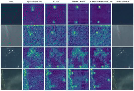 In this section, we conducted a series of ablation experiments to systematically evaluate the contributions of the key components of the proposed DPCSANet model. The primary objective of these experiments was to validate the effectiveness of the DPCSA, HHSPP, and Focal CIoU in enhancing the detection performance for small ships in optical RSIS. By isolating and comparing the impact of each component, we aimed to demonstrate their individual and combined contributions to the overall performance improvement. Additionally, these experiments were designed to further illustrate the rationality and necessity of the proposed module design. All ablation experiments were carried out using the LEVIR-ship dataset.