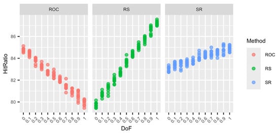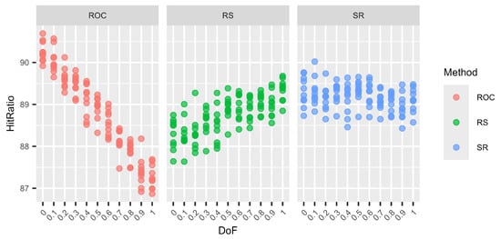 Variations in the hit ratio for 9 criteria and 9 alternatives for different DoF.