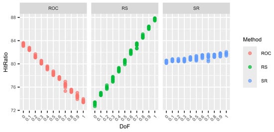 Variations in the hit ratio for 12 criteria and 12 alternatives for different DoF.