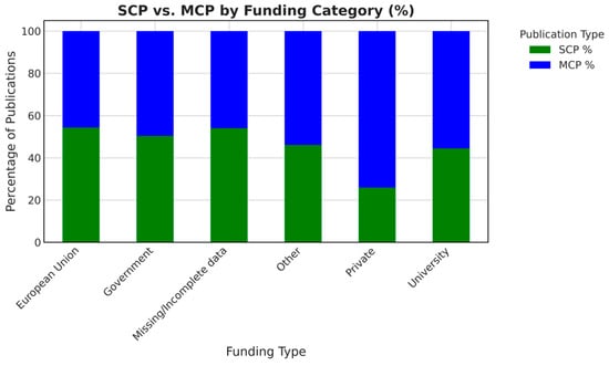We manually validated each record’s “FU” (Funding) column to assess how ML research in higher education is financed. Based on prior bibliometric frameworks [38], we categorized the reported sponsors into five discrete classes: