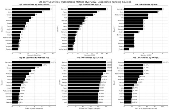 Given the methodological constraints associated with missing funding information, we acknowledge the possibility that some non-disclosed funding cases may still involve EU support that was not explicitly recorded. To mitigate this limitation, robustness checks were performed to compare publication venues, citation impact, and institutional affiliations across both subsets, ensuring that observed disparities were not artifacts of dataset composition. This comparative assessment provides a nuanced perspective on the role of funding acknowledgment in shaping institutional collaboration networks, offering insights into both structural advantages conferred by EU funding and the potential implications of limited financial transparency in research reporting.