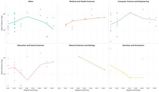 We mapped each publication’s subject categories to six macro-level domains—namely, “Computer Science and Engineering”, “Medical and Health Sciences”, “Business and Economics”, “Education and Social Sciences”, and “Environmental and Conservation Sciences”—to facilitate cross-sectional analyses. Because the original dataset spanned 62 granular categories, we consolidated them to reduce complexity while preserving domain specificity. For instance, we grouped “EDUCATION”, “PSYCHOLOGY”, and “SOCIOLOGY” under “Education and Social Sciences” if at least one of these labels were present. We applied this mapping using a custom Python script, ensuring consistency by aligning categories with established frameworks in bibliometrics [39].