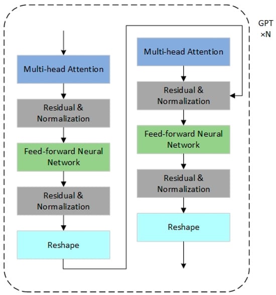 The GPT pre-trained model is primarily composed of decoder modules of the Transformer, as shown in Figure 4.