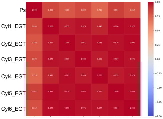 Multi-cylinder exhaust gas temperature (EGT) and Ps parameter correlation matrix.