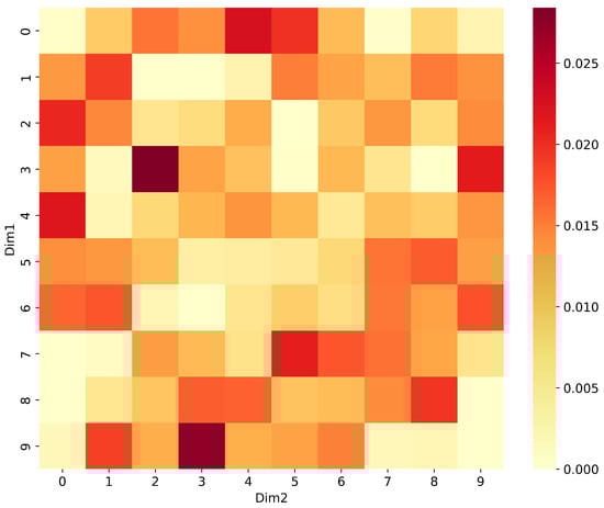 The comprehensive analysis of feature relationships illustrated in Figure 13, Figure 14, Figure 15, Figure 16 and Figure 17 reveals significant nonlinear patterns and complex interdependencies that challenge traditional linear architectures. The feature interaction scatter plot (Figure 14) demonstrates intricate branching structures with curved trajectories and multiple bifurcations, while the feature space distribution (Figure 15) space distribution in two dimensions (Dim1 and Dim2). The density is visualized using a color gradient, where deep purple represents low-density regions, and bright green indicates high-density regions with local maxima. The distribution exhibits irregular density patterns with multiple local maxima, as evidenced by the non-uniform distribution of high-density regions. Dim1 and Dim2 are obtained through dimensionality reduction to visualize the high-dimensional feature space. The joint probability distribution (Figure 16) further corroborates this complexity through asymmetric coupling patterns, particularly visible in the irregularly distributed high-probability regions. Most notably, the local correlation analysis (Figure 17) exhibits dramatic fluctuations between [−1, 1], indicating strong context-dependent feature relationships that fundamentally violate the assumptions of linear transformations.