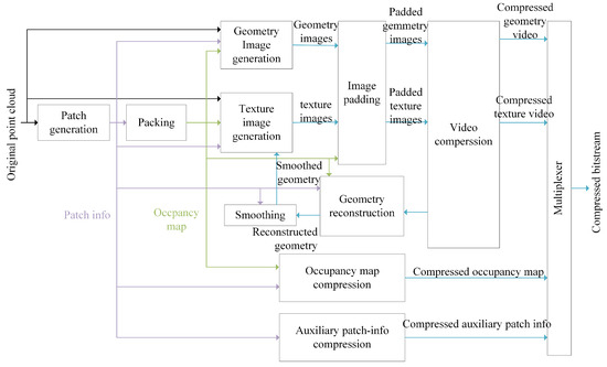 - Xiong, J.; Gao, H.; Wang, M.; Li, H.; Lin, W. Occupancy Map Guided Fast Video-Based Dynamic Point Cloud Coding. IEEE Trans. Circuits Syst. Video Technol. 2022, 32, 813–825. [Google Scholar] [CrossRef]