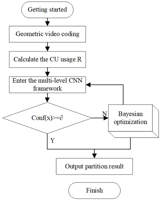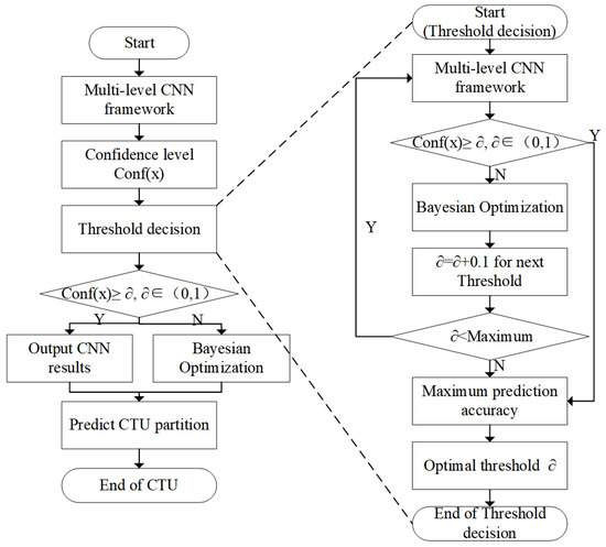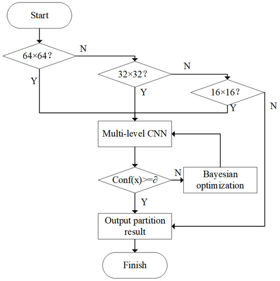 As discussed earlier, each CNN network outputs a partition confidence score, referred to as the CNN confidence threshold. If the confidence exceeds the threshold, the CNN’s partition decision is directly adopted. Otherwise, the decision proceeds to the Bayesian optimization module for further evaluation. The overall algorithm flow for threshold optimization is illustrated in the Figure 8.