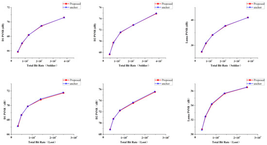 As illustrated in Figure 11, the proposed method in this study achieves R-D performance comparable to that of the anchor method. This finding further suggests that the proposed approach can substantially reduce computational complexity with a negligible increase in bit rate.