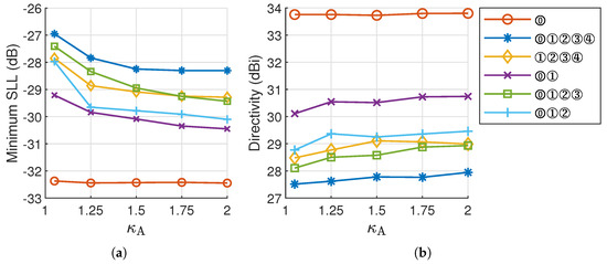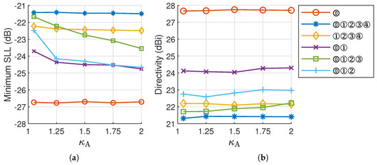 For a regular array composed of elements that have similar structures and low mutual coupling, multiple simultaneous beams of a low SLL can be obtained by simply weighting the amplitudes and phases of array elements, a process known as array synthesis. Phase-only synthesis is of great significance for designing reflectarray antennas, phased arrays, and reconfigurable intelligent surfaces [15,16]. Compared to amplitude-only or amplitude-phase synthesis, phase-only synthesis can obtain higher aperture efficiency and, thus, higher gain [17]. Several works have been done on the phase-only synthesis of MBAAs [18,19,20], but apparently none of them have reached the minimum SLL with relatively uniform sidelobe amplitudes as highlighted in [17].