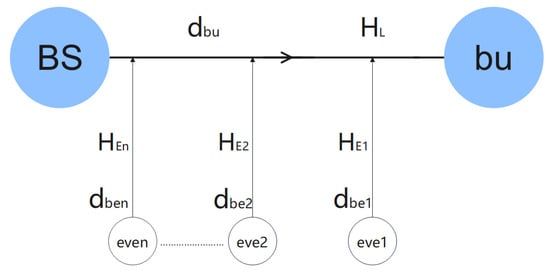 For the analysis, we assume that all channel state information (CSI) is known and that the channels follow Rayleigh fading and large-scale fading models. In this system, represents the lower bound for secure transmission. We define the security outage probability (secrecy outage probability, SOP) as the probability that the actual transmission rate is less than , which can be expressed as
