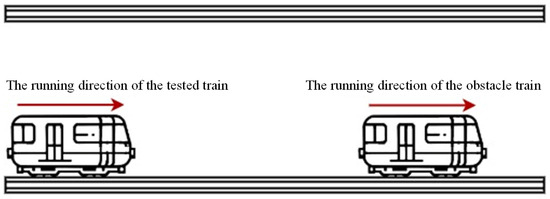 In the straight-track test, the test case evaluates the train’s ability to detect obstacles ahead both while running and when stationary. The straight-track scenario is shown in Figure 5.