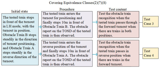 The results of Test Case 4 are similar to those of Test Case 3. After the tested train enters the turnout’s reverse positioning area, the ITE system reports only the position and category of Obstacle Train A within the reverse positioning area.