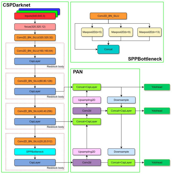 YOLO v5 introduces two CSP architectures, as shown in Figure 14. The CSP1_X architecture is designed for the backbone network, while the CSP2_X architecture is applied to the pyramidal feature network. The algorithm employs two different approaches: one extracts features from the image by using branching mechanisms, while the other stacks features in depth through convolution operations. The primary objective is to enhance the learning capacity of convolutional neural networks while reducing the computational cost of training.