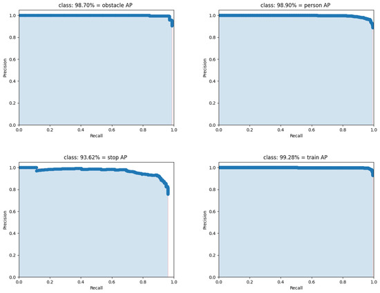 Further analysis of the model’s AP performance across different categories reveals that the AP values for Train, Person, and Obstacle all reach 0.99, while the AP for Stop is 0.93. Since the Stop category primarily consists of small objects, this result further confirms the model’s relatively weaker performance in detecting small targets.