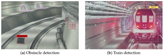 In order to strengthen the connection between the test and the actual scene, we conducted specific experiments on Beijing Metro Line 11. Figure 17 shows the results of the system’s detection of different types of obstacles. It can be seen that the system can accurately identify various types of obstacles.