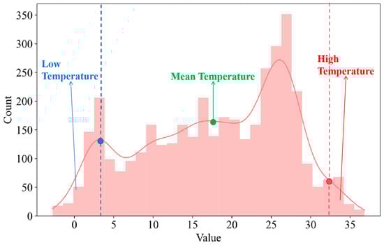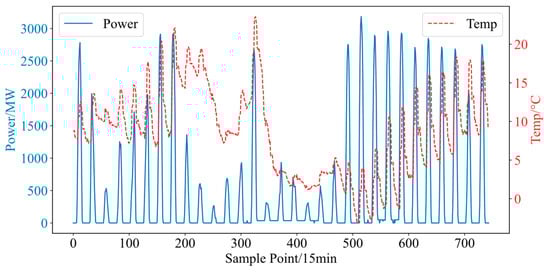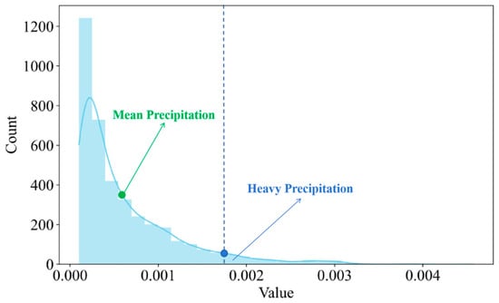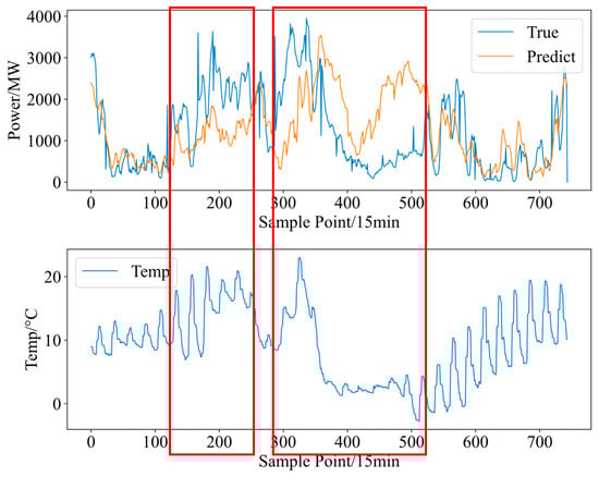 However, since the effects of certain high-impact weather processes are specifically reflected in the NWP data, in this case a serious drop in both actual and predicted power occurs, although the power prediction error does not change much. For example, for PV farms, the occurrence of heavy-precipitation weather events is usually accompanied by low irradiation intensity, leading to a consequent decrease in the power prediction results using irradiation intensity as a model input, which, coupled with the pronounced diurnal periodicity of PV farms, results in a very insignificant change in the power prediction error as reflected. Therefore, another definition method directly considers the case of new energy farms with abnormal outputs and judges all of these time points as possible high-impact weather processes. The subsequent practice is consistent with the previous one, assuming that the sensitive weather factor data corresponding to these time points satisfy normal distribution, calculating their mean value and standard deviation, and then taking the data points that deviate from the mean value by 1–2 standard deviations to be defined as the meteorological factor threshold for the new energy high-impact weather process, and the time points corresponding to the meteorological data higher than this threshold are defined as the time points where the new energy high-impact weather process occurs.