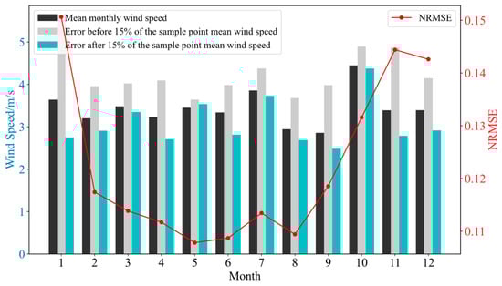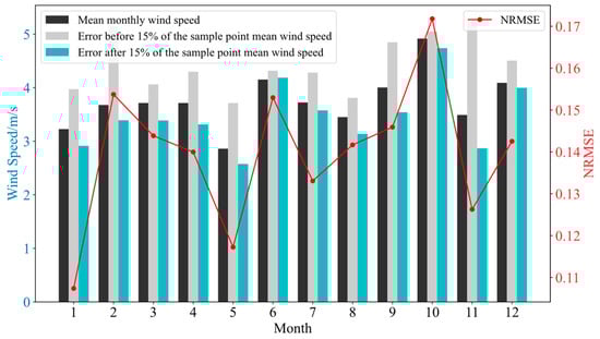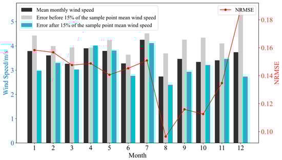 The monthly average wind speeds for each month from 2021 to 2023, the average wind speeds at the time points where the power prediction error is in the first 15%, and the average wind speeds at the time points where the power prediction error is in the bottom 15% are calculated and compared, and the comparison results are shown in Figure 9, Figure 10 and Figure 11.