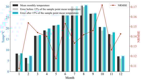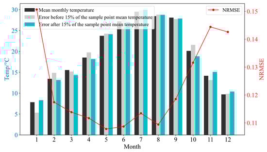 In the same way as the previous analysis, the monthly mean temperature of each month from 2021 to 2023, the mean temperature at the time point where the power prediction error is in the first 15%, and the mean temperature at the time point where the power prediction error is in the bottom 15% are calculated and compared, and the results of the comparison are shown in Figure 12, Figure 13 and Figure 14.