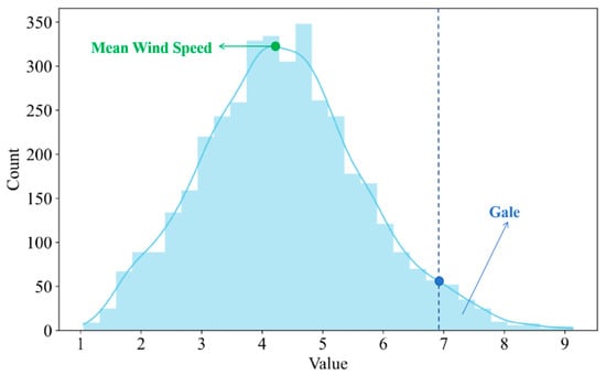 Histogram of wind farm data distribution.
