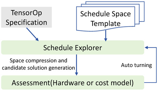 - Zheng, L.; Jia, C.; Sun, M.; Wu, Z.; Yu, C.H.; Haj-Ali, A.; Wang, Y.; Yang, J.; Zhuo, D.; Sen, K.; et al. Ansor: Generating High-Performance tensor programs for deep learning. In Proceedings of the 14th USENIX Symposium on Operating Systems Design and Implementation (OSDI 20), Seattle, WA, USA, 4–6 November 2020; pp. 863–879. [Google Scholar]