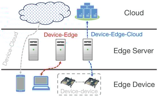Although the above optimization methods can improve the inference efficiency, the resource-constrained characteristics of edge devices limit real-time performance. In recent years, various applications have adopted collaborative inference [33,34,35] schemes to alleviate this problem. Collaborative inference can divide the inference task into different sub-tasks, and then dynamically assign these sub-tasks to different nodes based on the characteristics of each node. Compared with the single-node scenario, collaborative inference can adopt flexible scheduling strategies and resource allocation methods to achieve lower inference latency or energy consumption. Intelligent collaborative inference involves collaboration between multiple models or devices. The core challenge is how to effectively allocate tasks, protect data privacy, and ensure real-time responsiveness and inference accuracy.