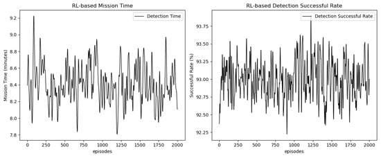 As shown in Figure 3, the task execution time and detection success rate, based on the proposed MADSAC approach, exhibit distinct trends over the course of 2000 episodes.