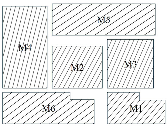 For any module a in the sequence pair , if its arrangement in the sequence pair is , then the x-coordinate of module a is the sum of the lengths of the modules corresponding to the longest common subsequence of , and the y-coordinate is the sum of the widths of the modules corresponding to the longest common subsequence of . Here, is the reverse sequence of . To facilitate subsequent routing, this paper sets the module spacing to 10 units and selects 6 modules to generate a sequence pair for demonstration. The placement result is shown in Figure 2.