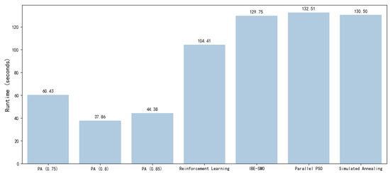 To further validate the effectiveness of the optimization algorithm employed in this study, we have provided a detailed presentation of selected cases from the dataset. The specific results show the routing connectivity ratio (RCR) and wirelength for each case. Additionally, to better evaluate the algorithm’s performance on the entire dataset, we also recorded the results of layout optimization using routability prediction models trained with different thresholds. Table 3 lists the RCR and wirelength data after optimization using different algorithms on the datasets. Figure 7 shows the average time required for optimization by each algorithm.