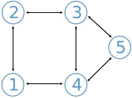 The following paragraph introduces fundamental concepts from graph theory []. These principles establish the theoretical basis needed for modeling and analyzing MASs. The notation denotes a weighted graph, represents the vertex set, and denotes the edge set. The adjacency matrix is defined such that if and otherwise. The neighbor set of the ith vertex is represented by . Graph is classified as connected and undirected if there exists a path connecting any pair of vertices in and if implies . The degree matrix is given by . Moreover, the Laplacian matrix is defined as . In distributed optimization, agents work together across a network to solve a shared problem. Consensus means all agents agree on the same solution, which is essential for success. The Laplacian matrix reflects the network’s structure, helping agents align their solutions by emphasizing connections between them and reducing differences with their neighbors. This alignment aids the optimization process by coordinating local efforts.