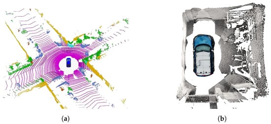- Xiao, P.; Shao, Z.; Hao, S.; Zhang, Z.; Chai, X.; Jiao, J.; Li, Z.; Wu, J.; Sun, K.; Jiang, K.; et al. Pandaset: Advanced sensor suite dataset for autonomous driving. In Proceedings of the 2021 IEEE International Intelligent Transportation Systems Conference (ITSC), Indianapolis, IN, USA, 19–22 September 2021; pp. 3095–3101. [Google Scholar]