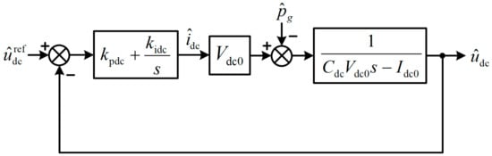 Through small-signal linearization at the rated operating condition ( = 1 p.u., = 1 p.u.), the small-signal equation of the DC-link dynamics can be derived as follows []: