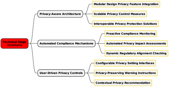 The social aspects dimension addresses human-centric elements, including privacy awareness and training programs for developers, legal–technical collaboration frameworks, and educational initiatives for end-users and government clients. This dimension responds to the identified need for better alignment between technical capabilities and user privacy expectations [24].