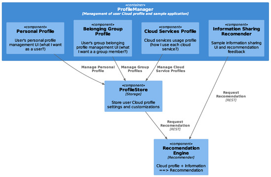 The profile manager (Figure 7) will be implemented as a web application. For the beta tool phase, this application could be deployed over the web. In the future, this can be provided as a cloud service or for enhanced privacy protection as local deployment on a per user basis. Each user will provide their personal preferences by creating a profile in the tool regarding group belonging and cloud service or social network usage. Since there will be some information to be shared, the recommendation engine will interfere to provide assistance before the actual sharing. This way, the user will be protected against information sharing with the wrong groups, privacy awareness will be raised through the recommendations, and more suitable content will be shared.