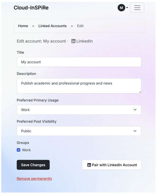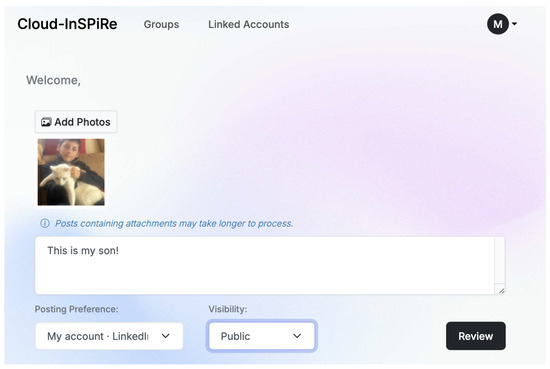 The first three parameters come from the profile manager, while the latter appear as options on the user-facing interface on the post screen. The implemented forms for profile management regarding the social group can be seen in Figure 9 and for the social media in Figure 10. Figure 11 displays a sample snapshot of a post ready to be reviewed.