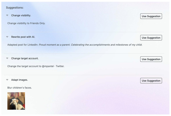 The tool’s ability to provide targeted recommendations for content modification, including text alterations for more acceptable language and image modifications to protect personal information, demonstrates practical privacy protection at the content level. This granular approach to privacy management represents a significant advancement over traditional binary privacy settings.