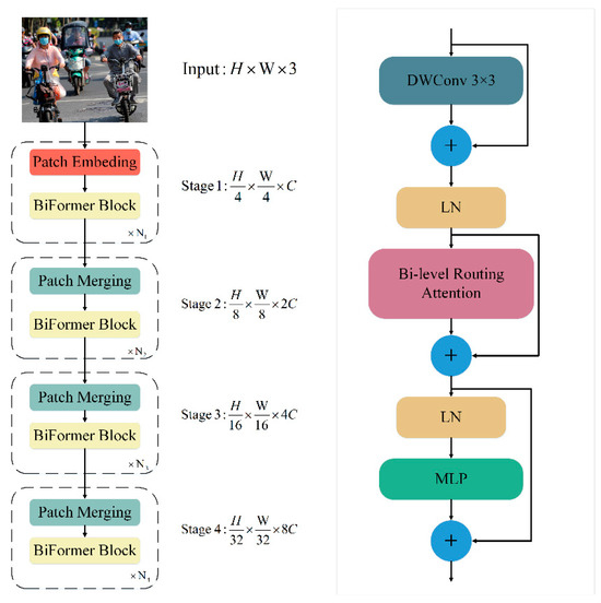 - Zhu, L.; Wang, X.; Ke, Z.; Zhang, W.; Lau, R.W. Biformer: Vision transformer with bi-level routing attention. In Proceedings of the IEEE/CVF Conference on Computer Vision and Pattern Recognition, Vancouver, BC, Canada, 17–24 June 2023; pp. 10323–10333. [Google Scholar]