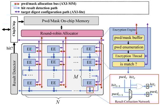 - Liu, P.; Li, S.; Ding, Q. An Energy-Efficient Accelerator Based on Hybrid CPU-FPGA Devices for Password Recovery. IEEE Trans. Comput. 2019, 68, 170–181. [Google Scholar] [CrossRef]